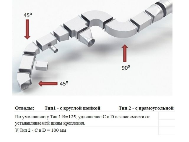 Отвод прямоугольный — фасонная часть системы вентиляции выполненный из листовой стали используется при необходимости изменения направления воздуховодов. Он является важной деталью организации процесса монтажа каналов и ответвлений . С его помощью можно соединять разные конструкции вентиляции, формировать ответвления и повороты. Использование данного элемента упрощает процесс монтажа, позволяет изменять направление воздушного потока. . Благодаря тому, что прямоугольные вентиляционные отводы выпускаются с различными углами поворота, сечением и толщиной металла, система воздуховодов, с применением данного фасонного элемента, может быть смонтирована в любой конфигурации. Отвод на концах имеет рамки из унифицированной оцинкованной шины и уголка, что обеспечивает их соединение со всеми элементами прямоугольной системы воздуховодов. Изготовление отводов в прямоугольной вентиляции, исходя из требований и пожеланий заказчика, возможно с квадратной или круглой шейкой. Для улучшения аэродинамических характеристик в отводе, возможна установка рассекателей.